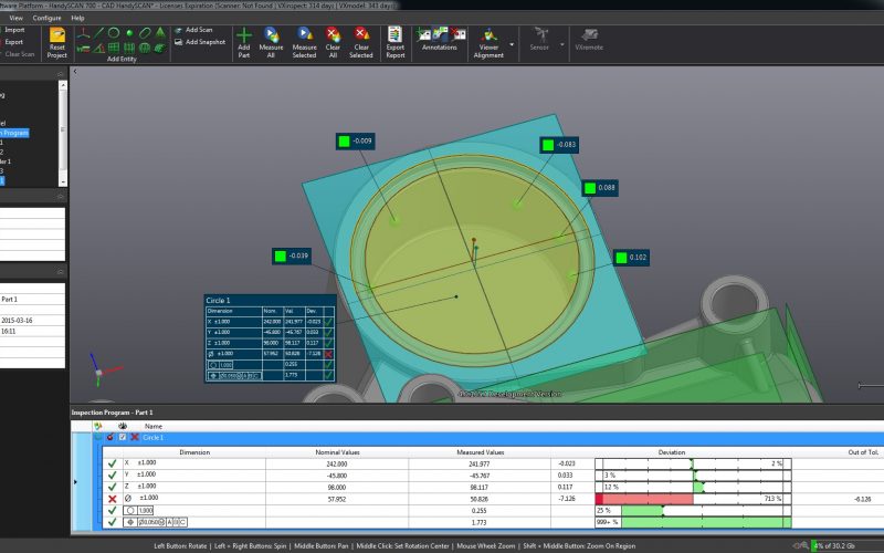 The combination of Creaform technologies with VXinspect offers the metrology software for shop‑floor environments. With its intuitive interface, it is the best solution for all inspection workflow, with no compromises made on measurement quality and GD&T requirements.